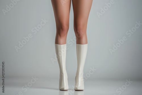 white, boot, fashion, model, studio, minimalist, footwear, style, chic, elegance, female, confident, posing, apparel, contemporary, trend, outfit, runway, high, lifestyle, artistry