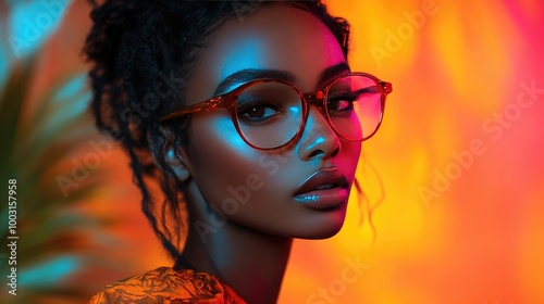 Stylish Woman Wearing Glasses with Colorful Background - Modern Fashion Portrait Photography