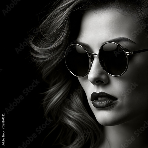 woman, sunglasses, portrait, closeup, confident, mystery, elegance, stylish, fashion, make-up, black-and-white, sophisticated, bold, model, glamour, beauty, chic, accessory, allure, attitude, trendy, modern, cool, dark, striking, hair, wave, moody, photo, dramatic, female, posh, charme, style, face, expression, posing, creative