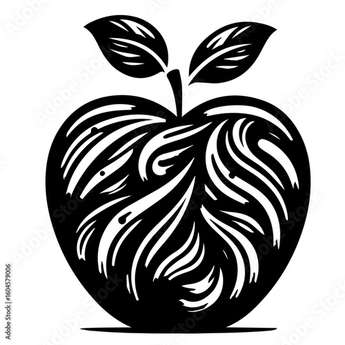 Stylized Black and White Apple Silhouette