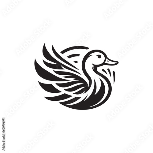 duck, bird, flight, wing, illustration, graphic, icon, logotype, stylised, art, design, animal, wildlife, nature, black-and-white, monochrome, abstract