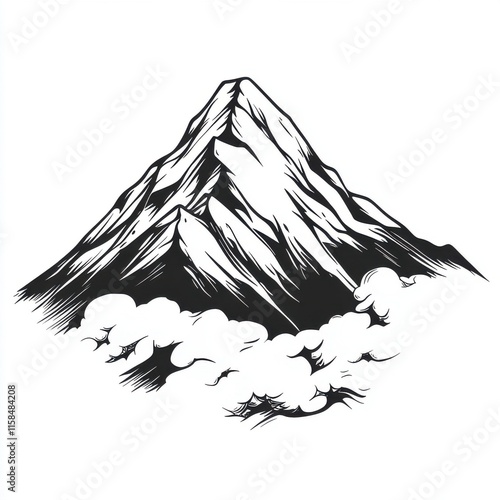 mountain, cloud, illustration, black-and-white, nature, landscape, majestic, stylised, art, rugged, texture, dramatic, scenic, outdoors, silhouette, snow-capped, wilderness, minimalist, print, decor, vector, high contrast, design, natural, peaceful, stylish, drawing, graphic, epic, scenery, monochrome, peak, adventure, land, travel, serene, background, fine art, artistic, hiking, exploration, topography, environment