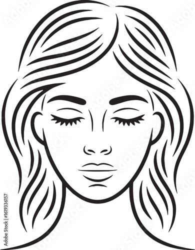 woman, face, illustration, black-and-white, stylised, drawing, portrait, closed eyes, peaceful, calm, serene, beauty, feminine, hair, eyelash, lip, nose, ear, simple, graphic, outline, clean, elegant, minimalist, artistic, design, head, shoulder, profile, line art, vector, graphic design, spa, wellness, meditation, relaxation, skincare, make-up, fashion, style, beauty parlour