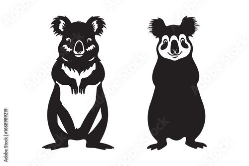 koala, marsupial, animal, illustration, drawing, vignetting, black, and, white, silhouette, standing, cute, adorable, wildlife, australian, native, icon, graphic, vector, design, art, stylised, simple, minimalist, creature, mammal, pet, cartoon, character