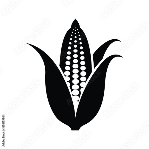 Stylized black and white vector graphic of corn on the cob, isolated on a white background vector illustration