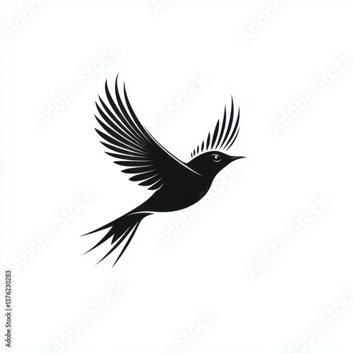 Stylized black bird in flight with elegant wings capturing freedom and beauty in motion