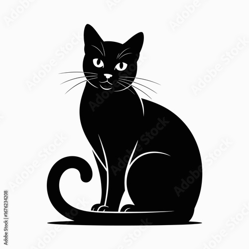 black cat, felino, animal, pet, domestic cat, mammal, creature, icon, symbol, illustration, graphic, drawing, art, design, stylised, minimalist, clean, simple, elegant, graceful, mysterious, witchcraft, halloween, superstition, luck, bad luck, good luck