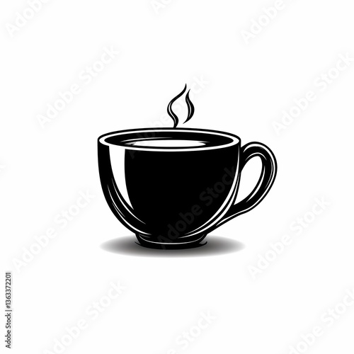 Stylized black coffee cup illustration emitting steam graphic design with focus on line and shape