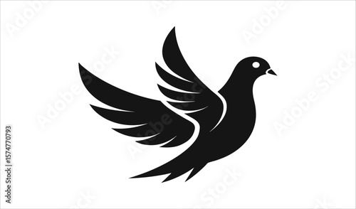 dove, pigeon, bird, flying, wing, flight, silhouette, black, white, graphic, design, vector, illustration, icon, symbol, peace, hope, freedom, spirituality, logotype, abstract, stylised, minimal, simple, elegant, clean