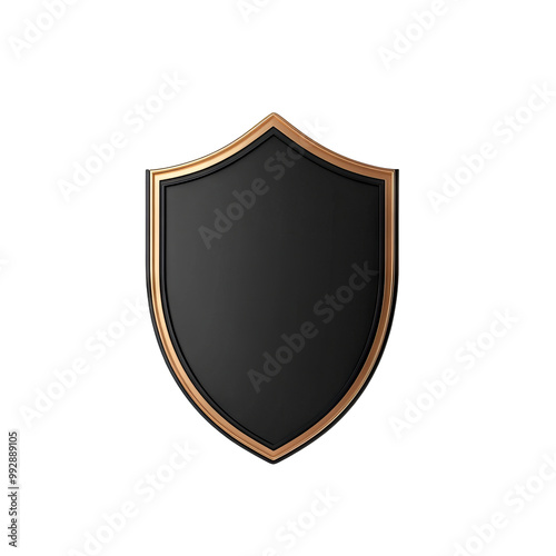 Stylized black shield with a golden border, isolated background, Transparent Background