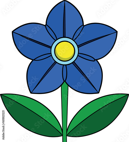 flower, blue flower, nature, floral, plant, botanical, garden, spring, summer, bloom, blossom, leaf, green leaf, stem, illustration, drawing, graphic, icon, design, simple, clean, minimalist, isolated, white background, decoration, element, symbol, beauty, fragrance