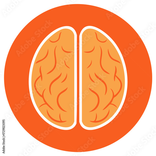 Stylized Brain Illustration on Orange Circle Symbol of Intelligence and Cognitive Function