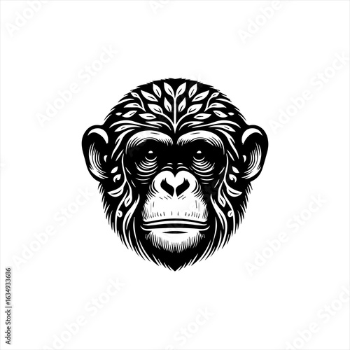Stylized Chimpanzee Head with Nature Elements.