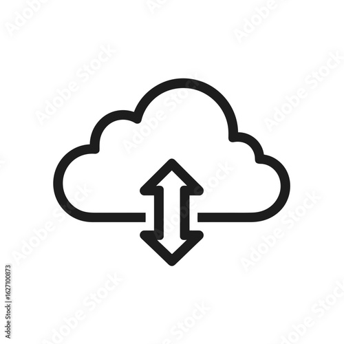 Stylized cloud outline with bidirectional arrow signifies data transfer and connection, concept for cloud computing technology, data synchronization and internet services.