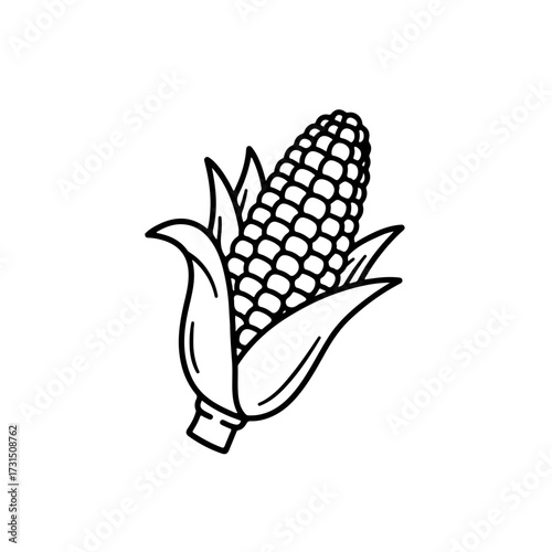 corn, cob, maize, ear, kernel, husk, leaf, agriculture, harvest, autumn, fall, food, vegetable, plant, grain, stalk, farm, farming, crop, produce, vegetarian, vegan, healthy, organic, natural, ingredient, cooking, cookery, outline, drawing, illustration, vector, graphic, design, art, artwork, simple, minimalist, monochrome, black, white, isolated, single, object, element, icon, symbol, signs