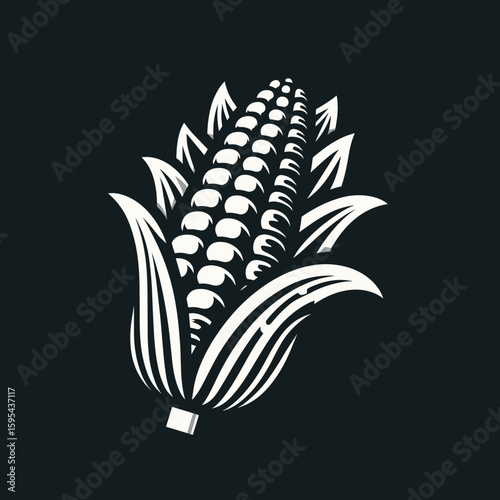 Stylized corn illustration with detailed leaves for agricultural and culinary art