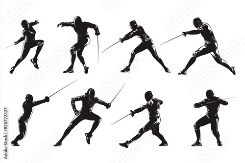 Stylized fencers demonstrating dynamic sword techniques in a creative artistic arrangement