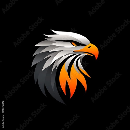 Stylized golden eagle with radiant feathers glowing brightly on black