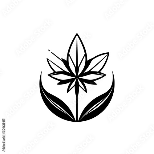 vector, black, white, logotype, leaf, cannabis, emblem, minimalist, symmetry, geometric, line, elegant, simple, symbol, abstract, design, contrast, modern, nature, graphic, illustration, shape, icon