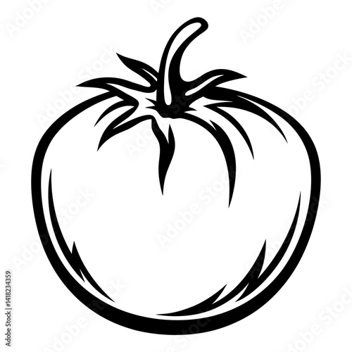 Stylized monochrome tomato illustration with bold outlines and simple aesthetic