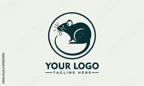Stylized rat illustrated inside circular frame with curved water-like lines below feet. Animal concept