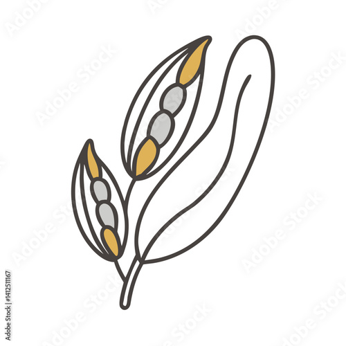 seed, pod, plant, botanical, nature, illustration, drawing, stylised, organic, yellow, grey, black, simple, minimalist, graphic, vector, germinating, growth, farming, agriculture, food, garden, ingredient, element, isolated, floral, design, artwork, clip art, icon, symbol, leaf, stem, flora, herb, raw, health, vegetarian, vegan
