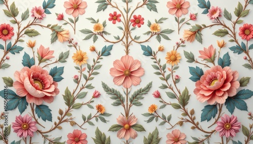 Subtle floral damask pattern in muted tones, ideal for social posts , screen, social media