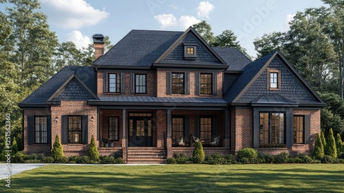 house, home, suburban, brick, architecture, rendering, real estate, exterior, design, property, family, building, dream, luxury, modern, residential, elegant, new, construction, homeowner, lifestyle, roomy, comfortable, american, style, large, beautiful, charming, classic, traditional, estate, luxury home, villa, bungalow, roof, window, door, yard, landscape, tree, green, sky, sunlight, nature, warm, cosy, peaceful, secure, investment
