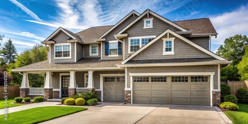 Suburban house with attached garage, suburban, house, home, residential, neighborhood, garage, driveway, car