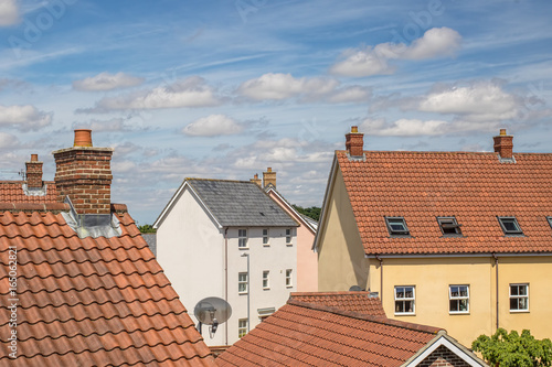 suburb, modern, housing, estate, variety, home, house, building, property, slate, clay, roof, top, tile, britain, english, england, clad, cladding, chimney, stack, picturesque, property, modest, residential, area, suburban, living, view, scene, scenic, cloudy, blue, sky, skyline, window, various, varied, crowded