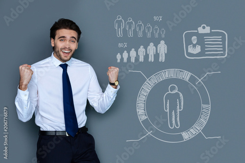 Success. Cheerful expressive young lawyer feeling excited and celebrating his success