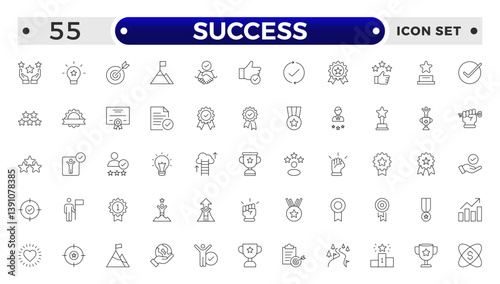 Success outline web icons set. Success, achievement, successful, strategy, winner, teamwork, goal, brainstorm, challenge and task.