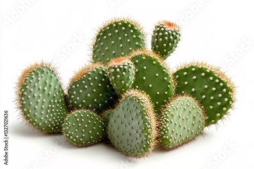 Succulent cacti with vibrant green pads on a white background.