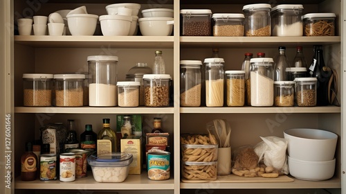 sugar, grocery, kitchen, illustration, pantry, cereal, flour, snack, shelf, cupboard, storage, organisation, supply, food, staple, essential, jar, label, stock, tidy, order, accessible, visible