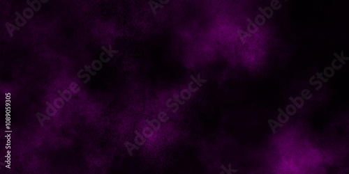Sugarplum Fog or smoke color isolated background, old brick walls concrete floor smoke, illuminated by neon lights with laser beams, smoke, Purple powder dust smoke on black background.