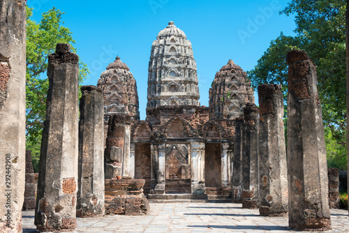 Sukhothai, Thailand - Apr 08 2018: Wat Si Sawai in Sukhothai Historical Park, Sukhothai, Thailand. It is part of the World Heritage Site - Historic Town of Sukhothai and Associated Historic Towns.