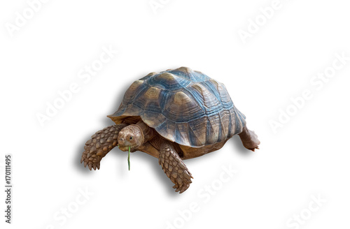 Sulcata tortoise, African spurred tortoise isolated on white background(clipping path)