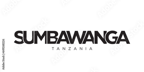 Sumbawanga in the Tanzania emblem. The design features a geometric style, vector illustration with bold typography in a modern font. The graphic slogan lettering.
