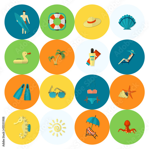 summer, beach, travel, vacation, icon, vector, symbol, sea, tour tourism, holiday, signs, cruise, ocean, flat, design, style, element, season, anchor, flip-flop, pail, shovel, sunglasses, sun, cap, starfish, shell, swimwear, beach chair, chaise longue, sunbathe, cocktail, ice cream, diving, sunburn, cream, lifebuoy, rubber, ring, flipper, fur seal, palma, surfboard, nautilus, sailfish, dolphin, island