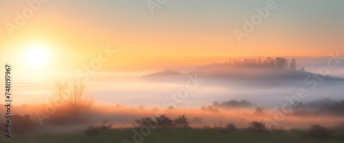 sunrise, fog, vale, meadow, tree, forest, sky, nature, cloud, sunset, dawn, orange, yellow, morning, rural, sun, calm, scenery, beauty, bright, colourful, country, field, outdoors, sunny, evening, light, new, ecology, pasture, sundown, sunlight, wallpaper, aerial view, atmosphere, dusk, earth, gold, scenic, mist, landscape, horizon, foggy