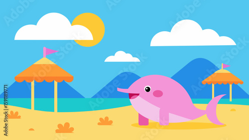 beach, sea, summer, sand, sky, sun, vector, ocean, water, illustration, palm, island, travel, wave, tropical, tree, landscape, nature, vacation, cartoon, design, coast, cloud, holiday, seascape