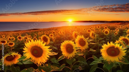 summer coastal sunflower fields illustration nature green, landscape beautiful, sky plant summer coastal sunflower fields