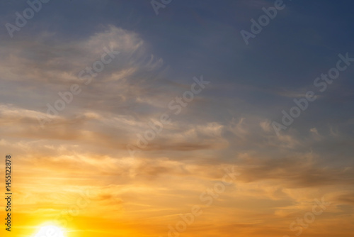 summer evening, sunset in yellow, orange and pink with clouds, background