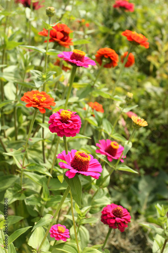flower, garden, flower, floral, flora, colours, colourful, nature, natural, botany, beautiful, beauty, bloom, spring, summer, season, seasonal, outdoors, high-coloured, vibrant, variety, various, background, red, grow, zinnia, countryside, flowerbed, bed, pink