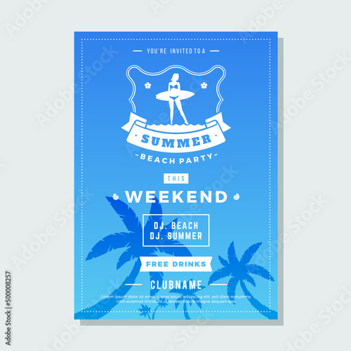 Summer holidays beach party flyer typography night club event label design. Vector illustration good for posters or flyers.
