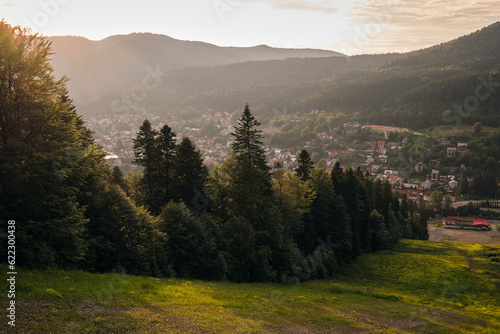 Summer landscape in mountains at sunset.Idyllic landscape in the Azuga, Romania.