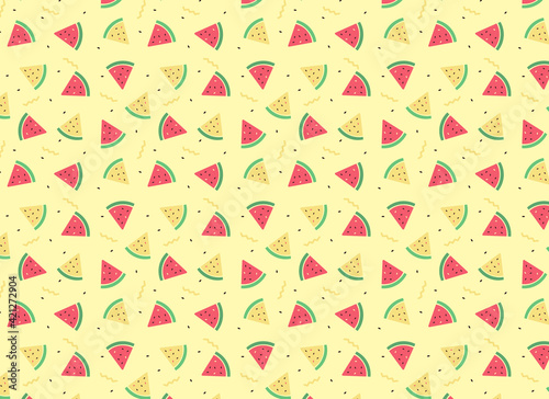 art, vivid colors, colourful, cute, design, fabric, food, fresh, fruit, illustration, nature, pattern, print, red, seamless, slice, summer, sweet, tasty, texture, wallpaper, watermelon, cartoon