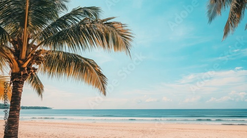 Summer Resort Beach Sea Relax Travel Vacation Palm Tropic Copy Space Banner Background Hotel, ai