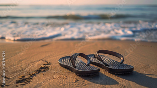 summer sandals displayed on a beach backdrop, product shoot, full of intricate details, no labels, object focused, png, stock image, hd quality, blog post.
