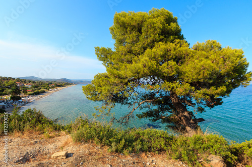 aegean, greece, beach, blue, coast, coastline, country, evening, holiday, landscape, nature, pine, resort, sand, sandy, scenery, scenic, sea, seascape, seacoast, season, shore, sky, slope, summer, travel, tree, vacation, view, water